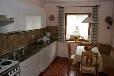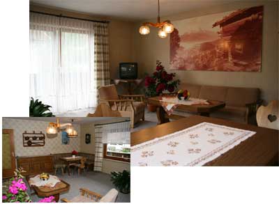 Unsere große Ferienwohnung ist ausgestattet mit einem großen Wohnzimmer, Schlafzimmer und großer Küche mit Essecke.